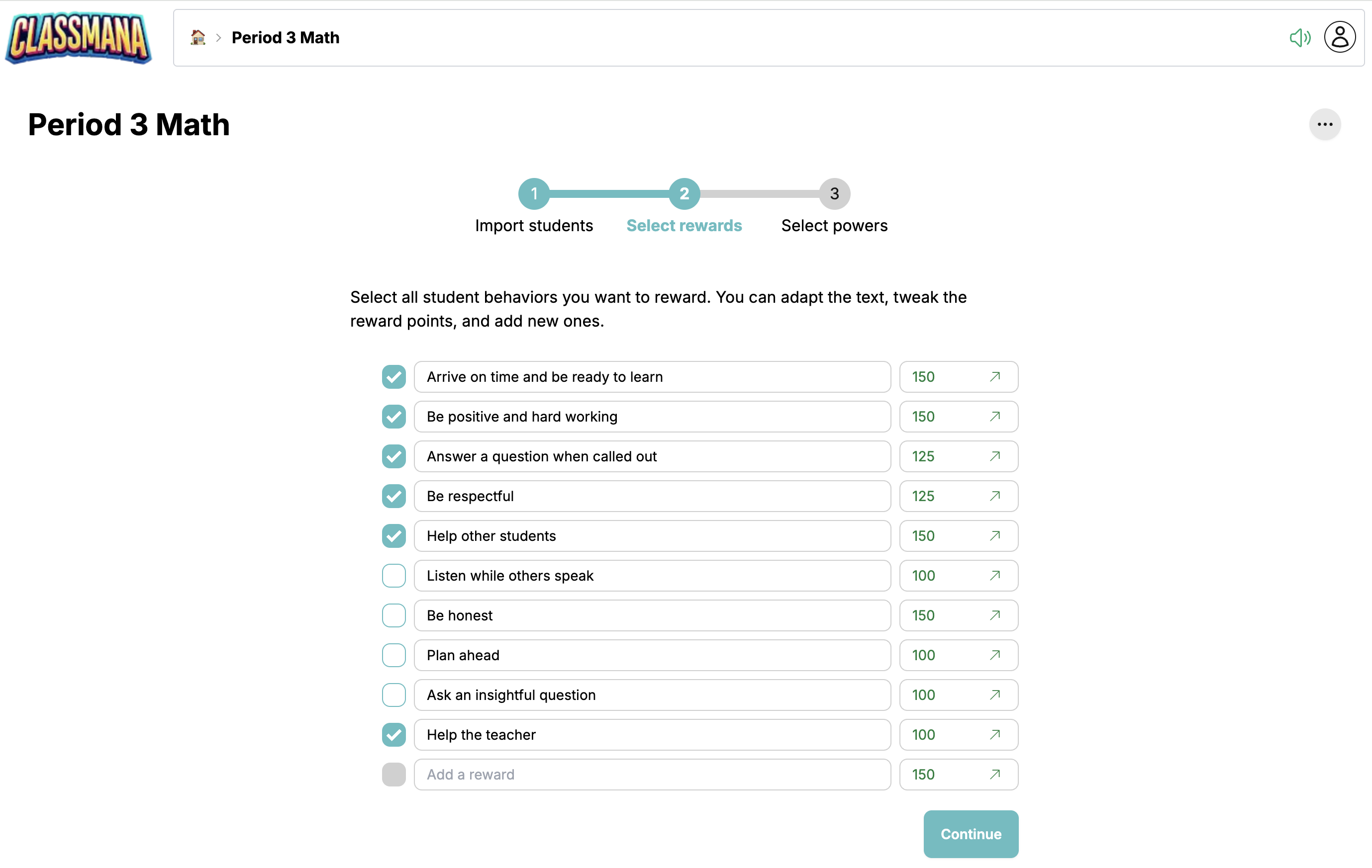 Ne vous inquiétez pas de rendre les récompenses parfaites maintenant. Vous pouvez ajouter, modifier ou supprimer des récompenses à tout moment depuis les Paramètres de classe.
